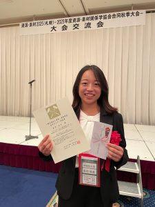 2025年9月3日 資源・素材学会秋季大会(札幌)にて、B4の森岡映美さんが 「ウズベキスタンにおける銅精錬尾鉱との光触媒による水素生成活性の増強メカニズム」にて"若手ポスター発表賞" を受賞しました。